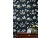 Vliesová tapeta na zed, tmavě modrý podklad, vzor jarních květin a kapradin. Co vás zaujme: netradiční přírodní motivy. Design: nadčasový. Úroveň tapetování: pro začátečníky. Země původu: Velká Británie.