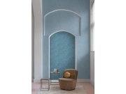 Vliesová tapeta s vinylovým povrchem - světle modrý podklad s jemným pololeskem, metalické textury v odstínech metalické zelené, terakota, bronzové a stříbrné. Barvy a odlesky se mění podle dopadu světla na tapetu. Co u vás zaujme: luxusní a stylový vzhle
