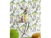 Přírodní a rostlinné motivy zpříjemní a zútulní každý interier. Rostlinné motivy ve fialové, zelené a tyrkysové barvě na bílém podkladu.