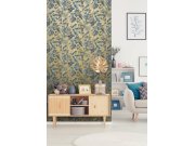 Máte rádi exotiku? Tropické rostliny, exotičtí ptáci a motýli skvěle oživí váš interiér. Vliesová tapeta s hladkým vinylovým povrchem. Podklad zlatý, vzor odstíny šedo-modré, šedé a černé.