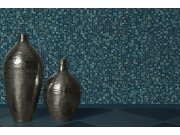 Design drobné mozaiky v modrých a modro-zelených odstínech, spáry matná bronzová. Tapeta je vysoce omyvatelná.