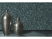 Vliesová metalická modrá tapeta s omyvatelným povrchem, efekt drobných kamínků.
