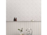 Luxusní vliesová tapeta s vinylovým povrchem, motiv listů, odstíny šedé, hnědé a bílé. Foto interiéru je pouze ilustrační - odlišné barvy.
