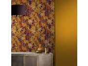 Pololesklá vliesová tapeta na zeď, girlandy listů v odstínech okrové, oranžové, fialové, hnědé.