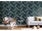 Vliesová tapeta na zeď, se strukturou rohože, odstíny šedomodré, tyrkysové, béžové, stříbrné.