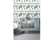 Šedo-zelená vliesová tapeta na zeď, bílé hvězdy.
