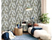 Luxusní plastická vliesová tapeta s vinylovým povrchem, motivy větviček a listů v odstínech šedo-modré a hnědo-béžové. Foto interiéru je pouze ilustrační - odlišné barvy.