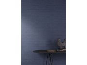 Luxusní žíhaná vliesová tapeta s hrubou textilní strukturou v modro-černé barvě. Podklad vlies, povrch omyvatelý vinyl.