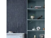 Vliesová tapeta na zeď, látková textura, odstíny modré, mat a metalická. Foto interiéru je pouze ilustrační - odlišné barvy. Co vás zaujme: věrnost imitace látky. Design: rustikální, nadčasový. Úroveň tapetování: začátečník. Země původu: Belgie.