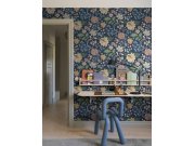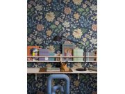 Vliesová tapeta na zeď, tmavě modrý podklad, bohatý květinový vzor v odstínech zelené, modré, béžové a meruňkové. Co vás zaujme: vyrobeno s ohledem na udržitelnost a ekologii. Design: přírodní. Úroveň tapetování: pro začátečníky. Země původu: Švédsko.