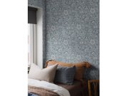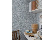 Vliesová tapeta na zeď, textilní struktura, modrý podklad, ornamentální květinový vzor v odstínech hnědo-béžové. Co vás zaujme: kvalita zpracování. Design: přírodní, romantický. Úroveň tapetování: pro začátečníky. Země původu: Holandsko.