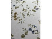 Luxusní vliesová tapeta s vinylovým povrchem, květinový motiv, smetanový podklad, látková textura, květiny v odstínech modré, khaki, hnědé, zelené. Co vás zaujme: kvalita zpracování, odolnost. Design: přírodní. Úroveň tapetování: pro začátečníky. Země pův