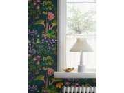 Vliesová tapeta na zeď, temně modrý podklad, motivy květin a listů v odstínech zelené, modré, růžové a fialové. Co vás zaujme: vyrobeno s ohledem na udržitelnost a ekologii. Design: přírodní. Úroveň tapetování: pro začátečníky. Země původu: Švédsko.