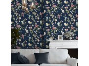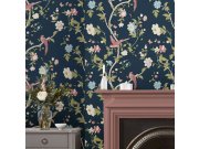 Tmavě modrá vliesová tapeta na zeď, motivy květin, motýlků a ptáků. Co vás zaujme: barvy. Design: romantický, přírodní. Úroveň tapetování: pro začátečníky. Země původu: Velká Británie.
