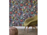 Luxusní květinová vliesová tapeta s vinylovým povrchem v pestrých barvách s metalickými odlesky. Motiv tropických květin a motýlů. Hrubá struktura.