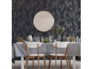 Vliesová tapeta na zeď, tmavě modrá látková textura, prolisované větvičky v hnědé, modré a stříbrné. Co vás zaujme: kvalita zpracování, odolnost. Design: klasický, přírodní. Úroveň tapetování: pro začátečníky. Země původu: Velká Británie.