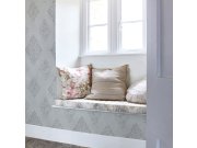Romantická ornamentální květinová vliesová tapeta ve světle šedých a modrých tónech vnese do interiéru klidnou atmosféru.