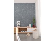 Dětská vliesová tapeta, bílý podklad, modrý ornamentální motiv květin a lesních zvířátek. Tapeta má látkovou texturu, je vhodná do dětského pokojíčku.
