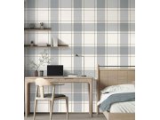 Vliesová tapeta s vinylovým povrchem, imitace kárované látky v odstínech béžové, šedé a modré. Světlá kostka 5,5 cm. Co vás zaujme: vysoká odolnost a omyvatelnost, kvalita zpracování. Design: nadčasový, rustikální. Úroveň tapetování: pro začátečníky. Země