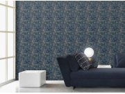 Tmavě modrá strukturovaná vliesová tapeta s vinylovým povrchem, bronzové motivy stromů, listů.