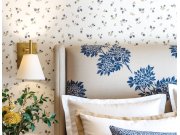 Luxusní vliesová tapeta s vinylovým povrchem, bílý podklad s látkovou texturou, květinový motiv v odstínech modré, khaki a hnědé. Co vás zaujme: kvalita zpracování, odolnost. Design: přírodní, romantický. Úroveň tapetování: pro začátečníky. Země původu: I