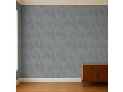 Šíře role 1,06m. Šedo-modrá luxusní vliesová tapeta se zlatými třpytkami - vinylový povrch, plastický vzor štukové omítky.