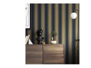 Vliesová tapeta s vinylovým povrchem, odstíny modré a hnědo-zlaté, vzor pruhů, látková textura. Šíře plného pruhu: 7 a 7,3 cm. Co vás zaujme: vysoká odolnost, propracované detaily. Design: klasický, luxusní. Úroveň tapetování: pro začátečníky. Země původu