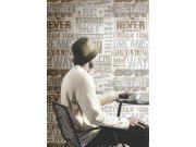 Vliesová tapeta nejen pro teenagery, nápisy v odstínech bílé, hnědé, stříbrné a zlaté.
