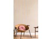 Vliesová tapeta s vinylovým povrchem, imitace proužkované látky v odstínech okrové a bílé. Pruhy cca 1,7 cm. Co vás zaujme: vysoká odolnost a omyvatelnost, kvalita zpracování. Design: nadčasový, rustikální. Úroveň tapetování: pro začátečníky. Země původu: