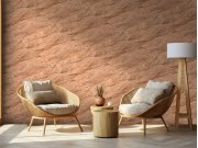 Vliesová tapeta na zeď s vinylovým povrchem vzhledem a strukturou štukové omítky v hnědých až oranžových odstínech.