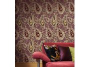 Vliesová tapeta s vinylovým povrchem, vínově červený podklad, ornamentální vzory v odstínech šedo-béžové a okrově zlaté, látková textura. Co vás zaujme: vysoká odolnost a omyvatelnost, kvalita zpracování. Design: nadčasový, klasický. Úroveň tapetování: pr