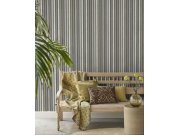 Vliesová tapeta s vinylovým povrchem, látková textura s pruhy v odstínech zelené, šedé, hnědé, černé a okrové. Pruhy 2,1; 2,6; 3,8; 7,7; 9,2 cm. Co vás zaujme: autentický vzhled. Design: klasický. Úroveň tapetování: pro začátečníky. Země původu: Holandsko