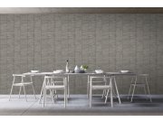 Vliesová tapeta - imitace stěnového obkladu v odstínech šedé, béžové a bílé.