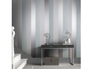 Hladká vliesová tapeta s papírovým povrchem - pruhy v odstínech šedé, šedo-modré a metalické stříbrné. Tapetu lze lepit vodorovně i svisle.