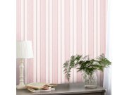Matná vliesová tapeta na zeď, růžové a bílé pruhy. Foto interiéru je pouze ilustrační - odlišné barvy.