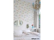 Romantický design vnese do interiéru klid a uvolnění. Rozkvetlé větvičky, ptáčci, vážky, motýli na bílé vliesové tapetě.