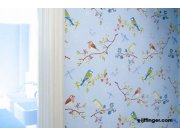 Vliesová tapeta na zeď, modrá, ptáci, květiny, větvičky, 127911, Arboretum, Graham Brown Premium