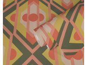 A.S. Création | Vliesová tapeta na zeď Retro Chic 39531-3 | tapeta na stěnu | 0,53 x 8,5 m | zelená, oranžová, meruňkováMateriál: Vlies