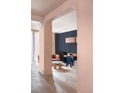 Luxusní světle růžová vliesová tapeta s vinylovým povrchem, hrubší látková textura. Foto interiéru je pouze ilustrační - odlišné barvy. Co vás zaujme: vysoká odolnost a omyvatelnost, kvalita zpracování. Design: nadčasový, rustikální. Úroveň tapetování: pr