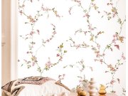 Luxusní vliesová tapeta s vinylovým povrchem, bílý podklad s látkovou texturou, romantický květinový motiv v odstínech růžové, zelené a okrové. Co vás zaujme: kvalita zpracování, odolnost. Design: přírodní, romantický. Úroveň tapetování: pro začátečníky.