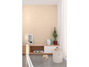 Béžová dětská vliesová tapeta, motivy kytiček a zajíčků. Tapeta má látkovou texturu, je vhodná do dětského pokojíčku pro nejmenší děti.
