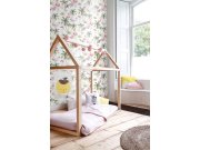 Dětská vliesová fototapeta na zeď, motivy květin, jahod a listů.