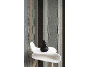 Luxusní vliesová tapeta s vinylovým povrchem, pruhy v černé, zlaté a odstínech šedé barvy.