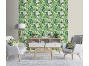 Vliesová tapeta na zeď se zelenými listy na bílém podkladu.
