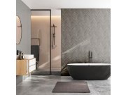 Najdete tu motivy inspirované italským travertinem, vzory připomínající lamely, kamenné bloky nebo lněnou strukturu. Barvy se drží v přírodních tónech – béžové, šedé, krémové i jemně pískové odstíny. Díky tomu působí klidně, elegantně a snadno se kombinují s moderním i klasickým interiérem.