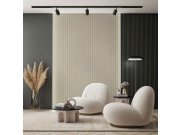 Luxusní vliesová tapeta s vinylovým povrchem, věrná imitace hrubší textilie s geometrickým vzorem, odstíny šedo-béžové s jemným pololeskem. Foto interiéru je pouze ilustrační - odlišné barvy. Co vás zaujme: kvalita zpracování, vysoká odolnost. Design: lux