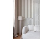 Vliesová tapeta s vinylovým povrchem, látková textura s pruhy v odstínech modré, šedé, hnědé. Pruhy 2,1; 2,6; 3,8; 7,7; 9,2 cm. Co vás zaujme: autentický vzhled. Design: klasický. Úroveň tapetování: pro začátečníky. Země původu: Holandsko.