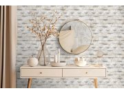 Šedo-béžová geometrická vliesová tapeta na zeď, imitace obkladu, RE25180, Reflect, Decoprint