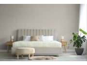 Luxusní vliesová tapeta v béžovo-šedé barvě s plastickým krémovým geometrickým vzorem na podkladě imitující štukovou omítku. Foto interiéru je pouze ilustrační - odlišné barvy.