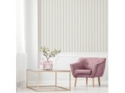 Matná vliesová pruhovaná tapeta na zeď, odstíny béžové, bílé a šedé. Foto interiéru je pouze ilustrační - odlišné barvy.